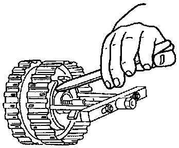 ^ Install a dial indicator on the side of the forward/coasting/ direct clutch cylinder and zero the needle on the pressure plate.