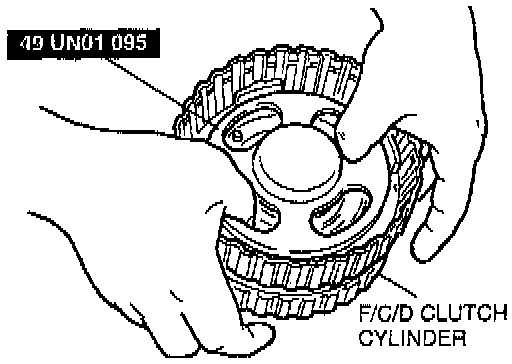 38. Support the forward/coasting/direct clutch cylinder on a block so that the direct clutch faces upward.