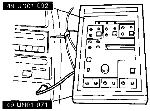 2. Set Bench/Drive switch to "DRIVE" mode. Install SST onto tester. Connect interface cable (cable I.D. "D") to transmission tester and then to the TR sensor connector.