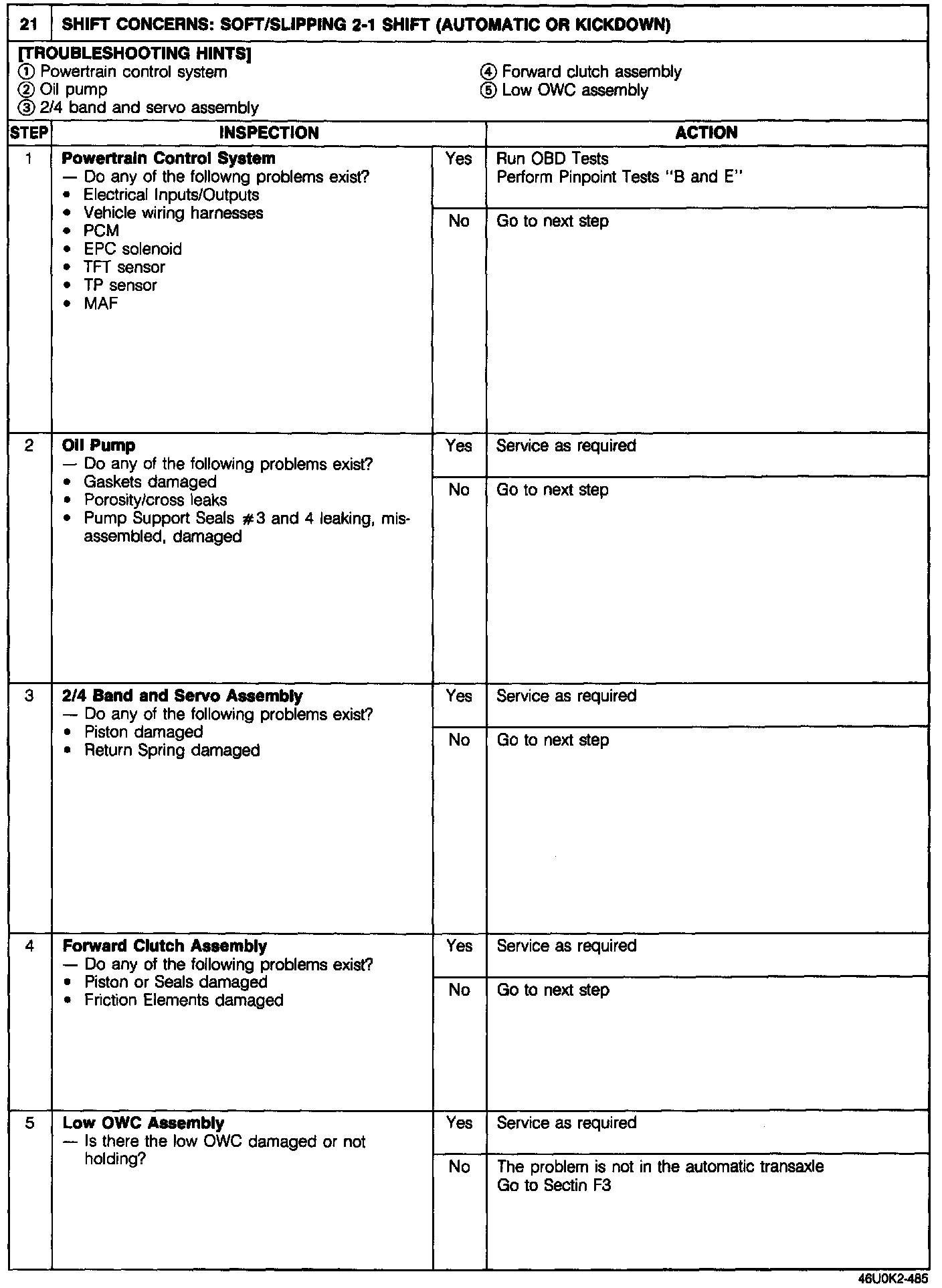 2-1 Shift (Automatic or Kickdown)