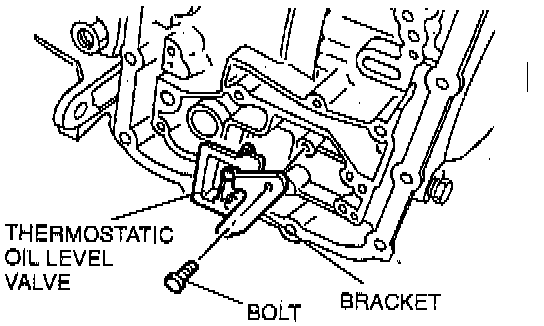 10. If the thermostatic oil level control valve must be removed, remove the bolt and the bracket. Pull the thermostatic oil level control valve straight out of the transaxle case.