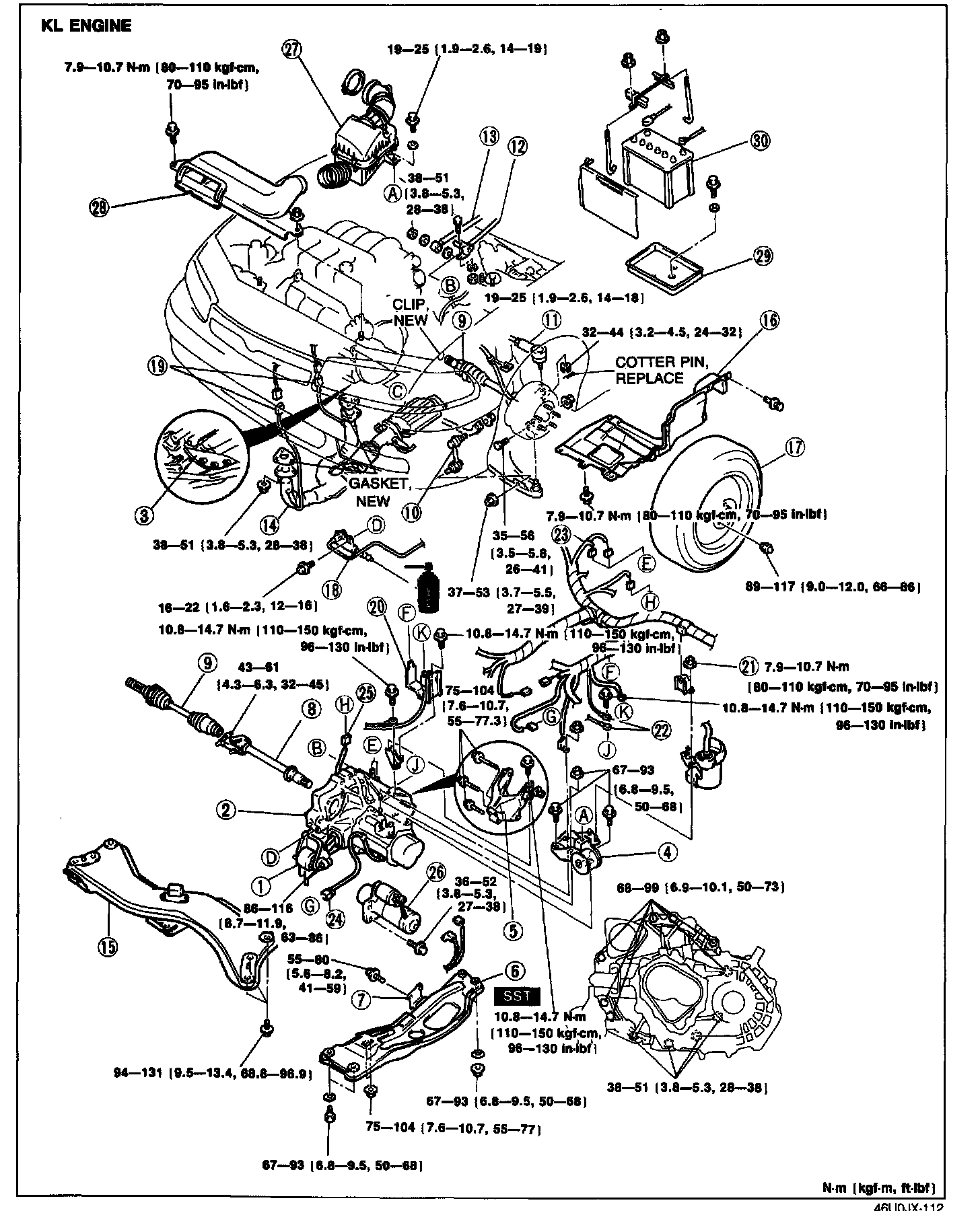 KL: 68-99 N.m (6.9-10.1 kgf.m, 50-73 ft.lbf)