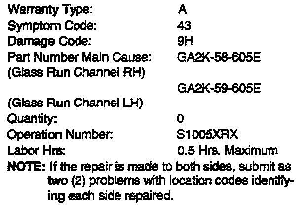 The door glass may come of the track, bind during operation or not operate at all. Customers complaining of this concern should have the vehicle inspected and if necessary, the door glass channel adjusted.