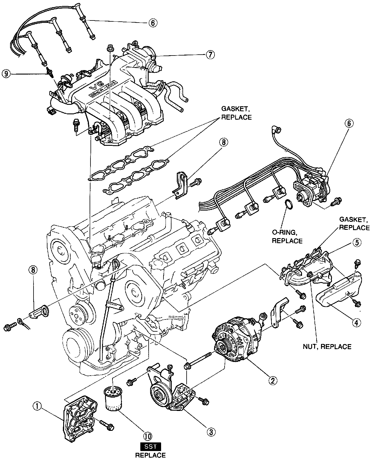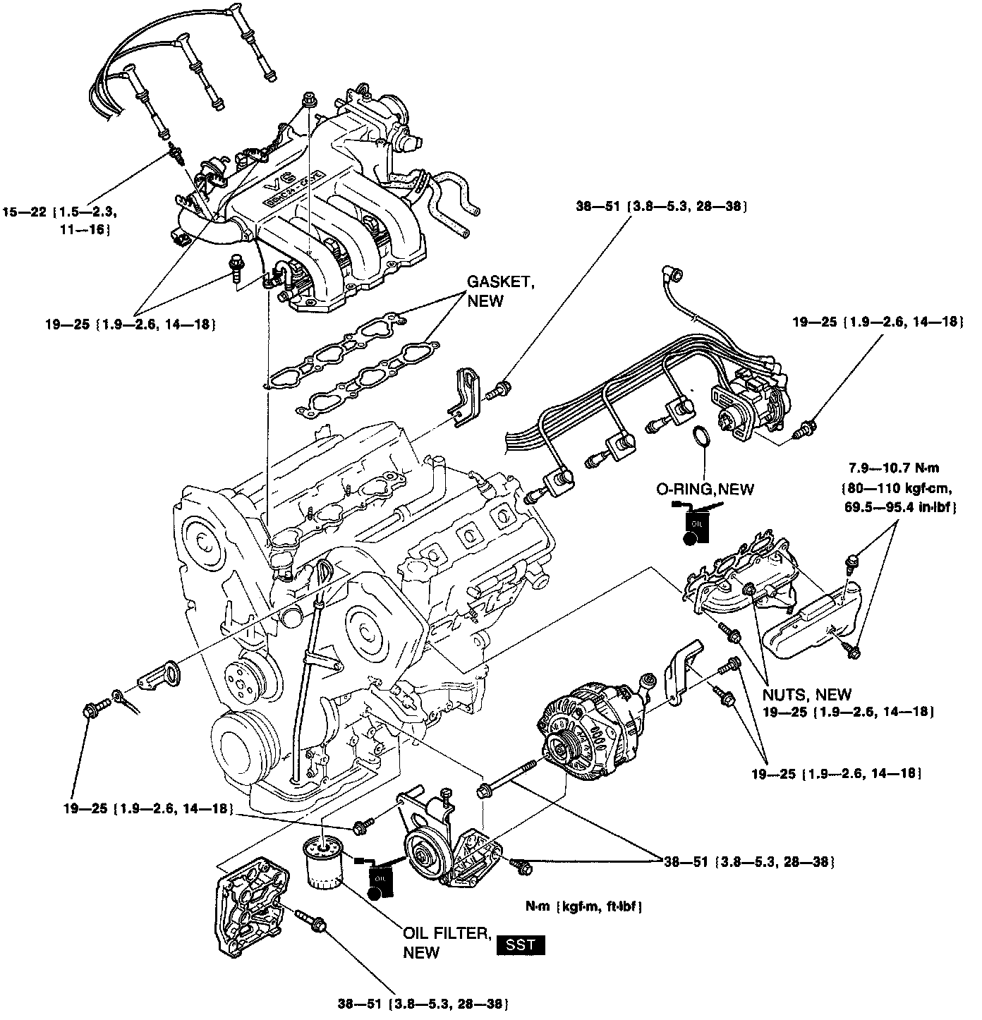 1. Install new gaskets and the intake manifold assembly Loosely tighten the bolts and nuts.