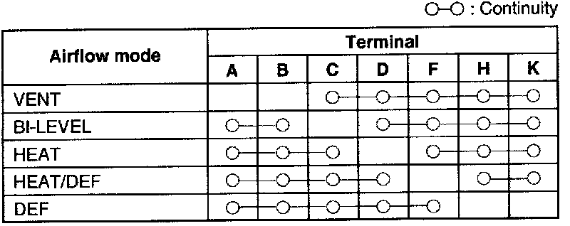 3. If not as specified, replace the airflow mode actuator.