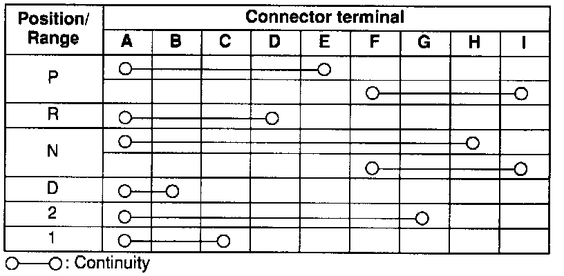 1. Verify that the starter operates only with the ignition switch at the START position and the selector lever in P and N positions.