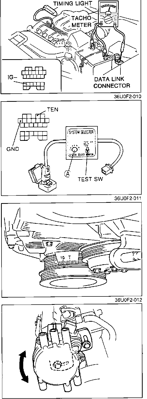 4. Connect timing light. Connect tachometer to data link connector terminal IG-.