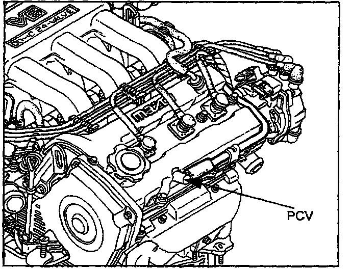 Due to the abolishment of the fresh air vent of positive crankcase ventilation (PCV) system on the left bank cylinder head cover, the following additional work is required for the PCV system when the partial engine (Part No.****-02-300*) is replaced with a new one.