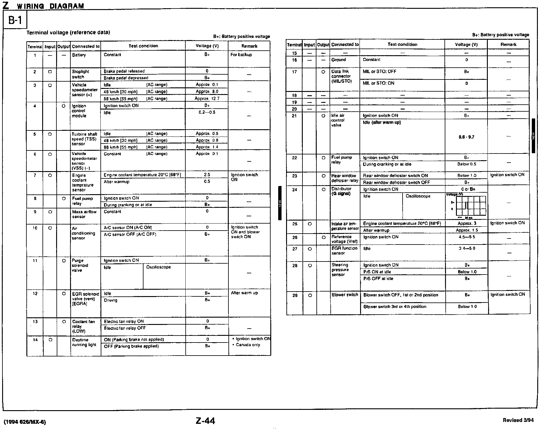 Included are replacement pages for 1994 626/MX-6 Wiring Diagram which require correction for the following reasons: