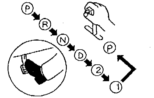 4. While depressing the brake pedal, shift the selector lever to each range (P-1), pausing momentarily in each range.