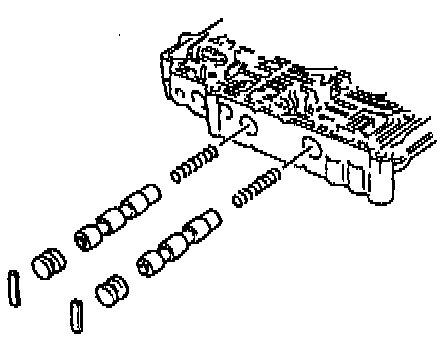 3. Install the torque converter clutch shift spring, torque converter clutch shift valve B, torque converter clutch shift valve A, stop plug, and stop pin.