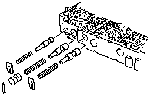 CAUTION: Denting or scratching these precisely machined components will reduce the ability of the transaxle to shift properly. When handling these components or the valve body that contains them, be careful not to drop or hit them.NOTE: If a valve does not slide out under its own weight, place the valve body open-side down and tap on the valve body lightly with a plastic hammer.