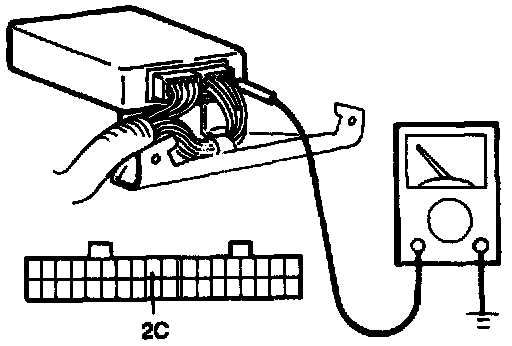 Output Duty Inspection1. Connect the (+) terminal of a dwell meter to terminal 2C of the powertrain control module (Transaxle) and the (-) terminal to a ground.