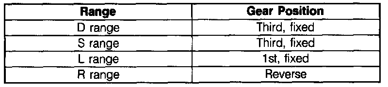 2. Accelerate the vehicle from 0 mph, and determine the gear position by observing the engine speed (drum speed). 1st gear is approximately 4,250 rpms. Third gear is approximately 1,500 rpms. Verify the gear position of each range.