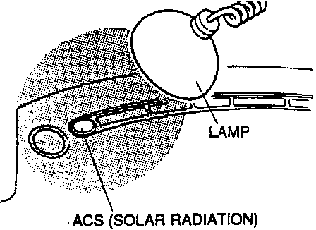Shine a lamp (60W) on the ACS (Solar Radiation) from a distance of approx. 10 cm {3.9}.