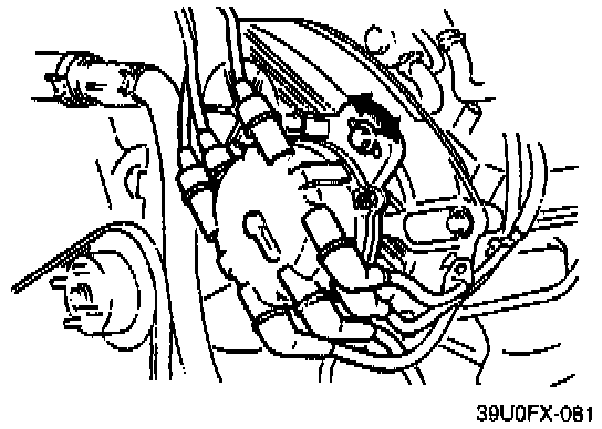 3. If the marks are not aligned, loosen the distributor lock bolts, and turn the distributor to make the adjustment.