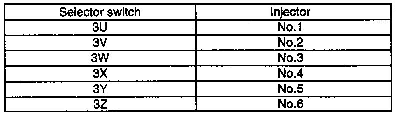 4. Set 3U, 3V, 3W, 3X, 3Y, and 3Z positions respectively on the SST to check the injectors.
