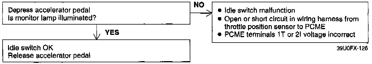 The TEN terminal of the data link connector must be grounded and the ignition switch turned to ON (engine off). If any switch remains activated, the monitor light will be illuminated. If switches are deactivated the monitor light should be OFF.