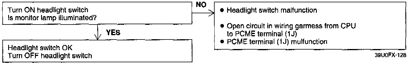 8. Verify that the monitor light illuminates when each switch is made to function as described. If the monitor light fails to illuminate or fails to turn OFF for any given switch under the conditions in Fig.1, then the switch and related circuit should be tested further.
