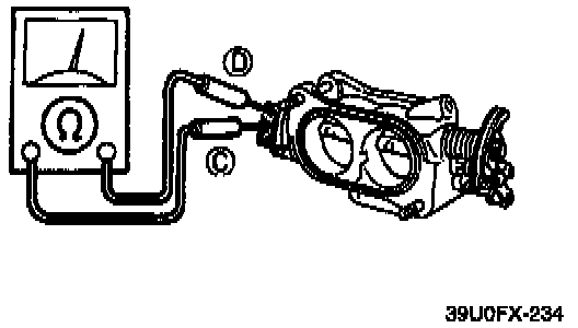 1. Disconnect the throttle position sensor connector from the throttle position sensor.2. Connect an ohmmeter between C and D terminals.