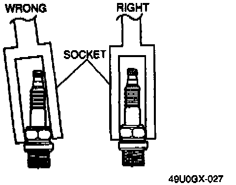 CAUTION: To avoid breaking the spark plug, be sure to fit the socket squarely over it.