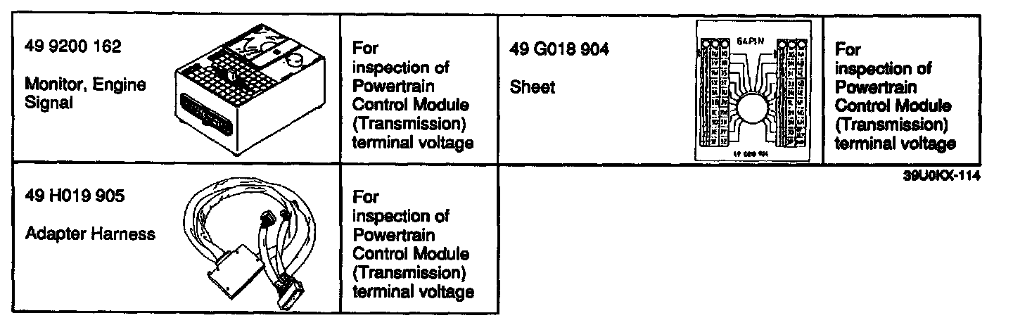 3. Connect the SSTs (Engine Signal Monitor and Adapter Harness) to the Powertrain Control Module (Transmission) as shown.