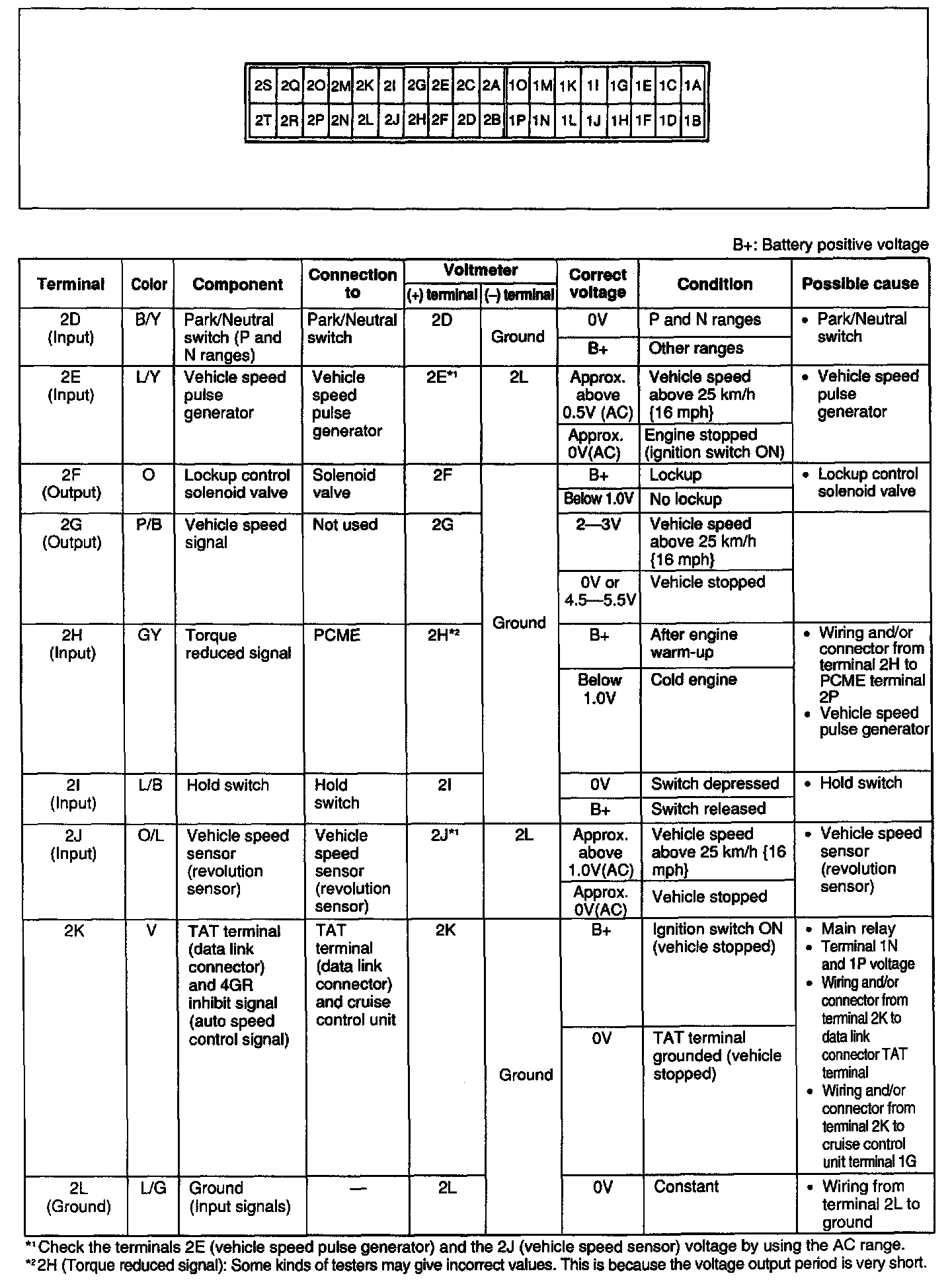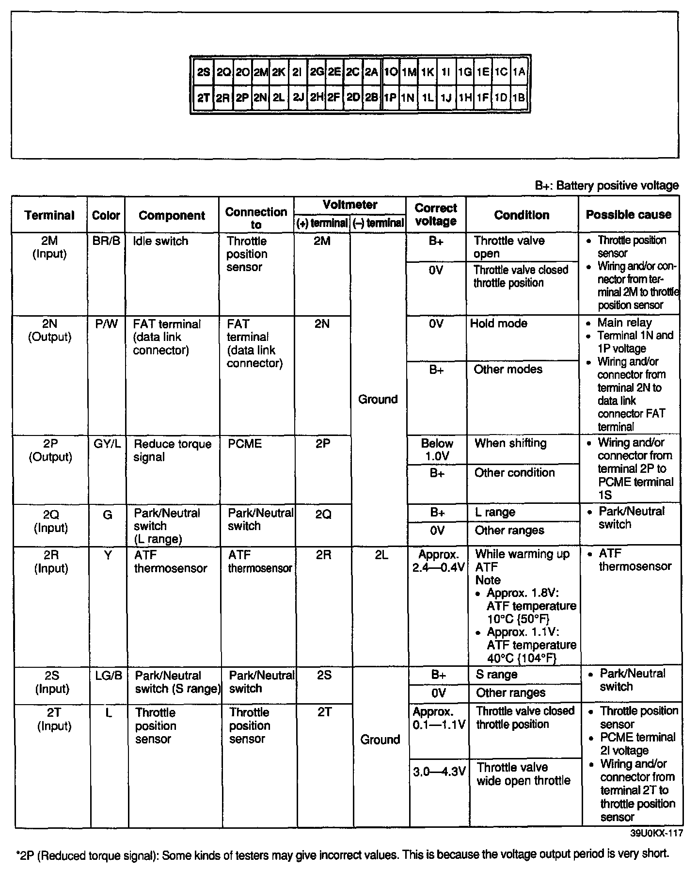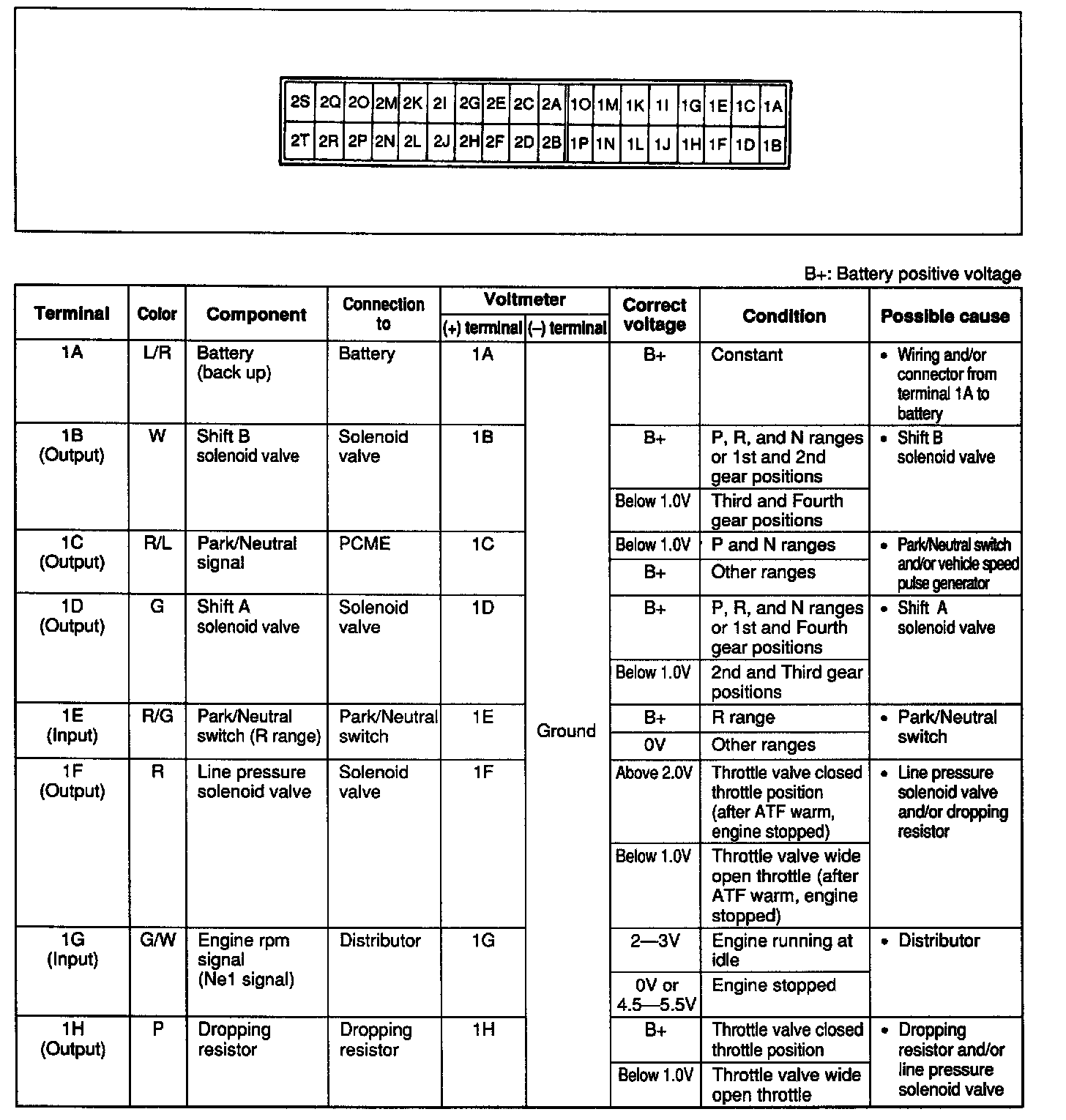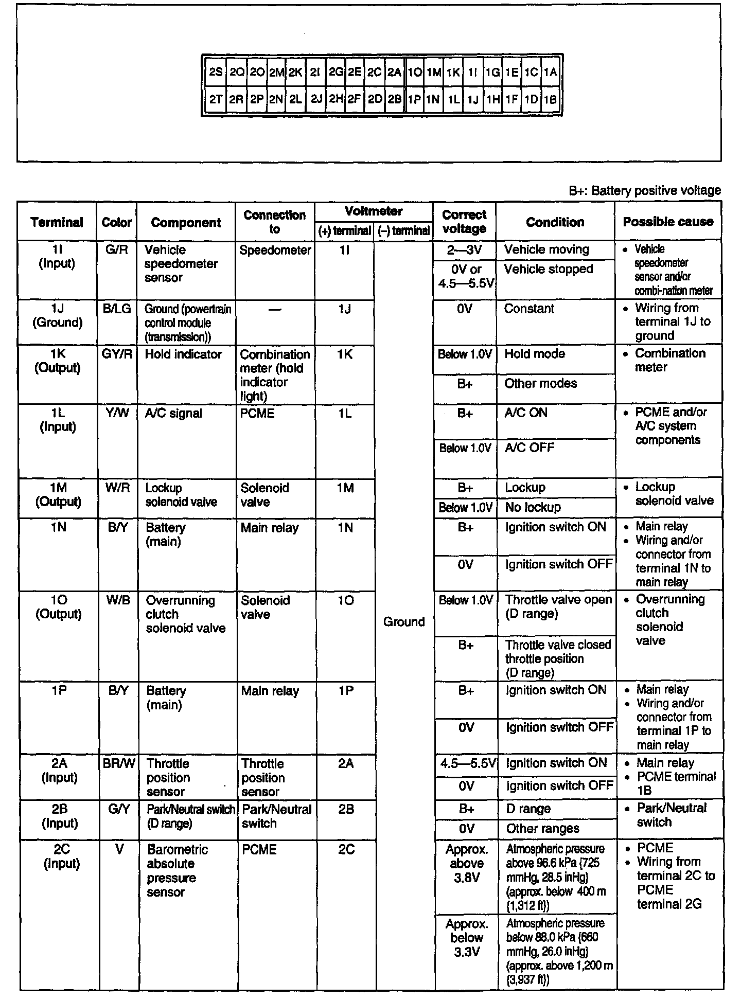 7. If any Powertrain Control Module (Transmission) terminal voltage is incorrect, check the related input or output devices and wiring. If no problem is found, replace the Powertrain Control Module (Transmission).