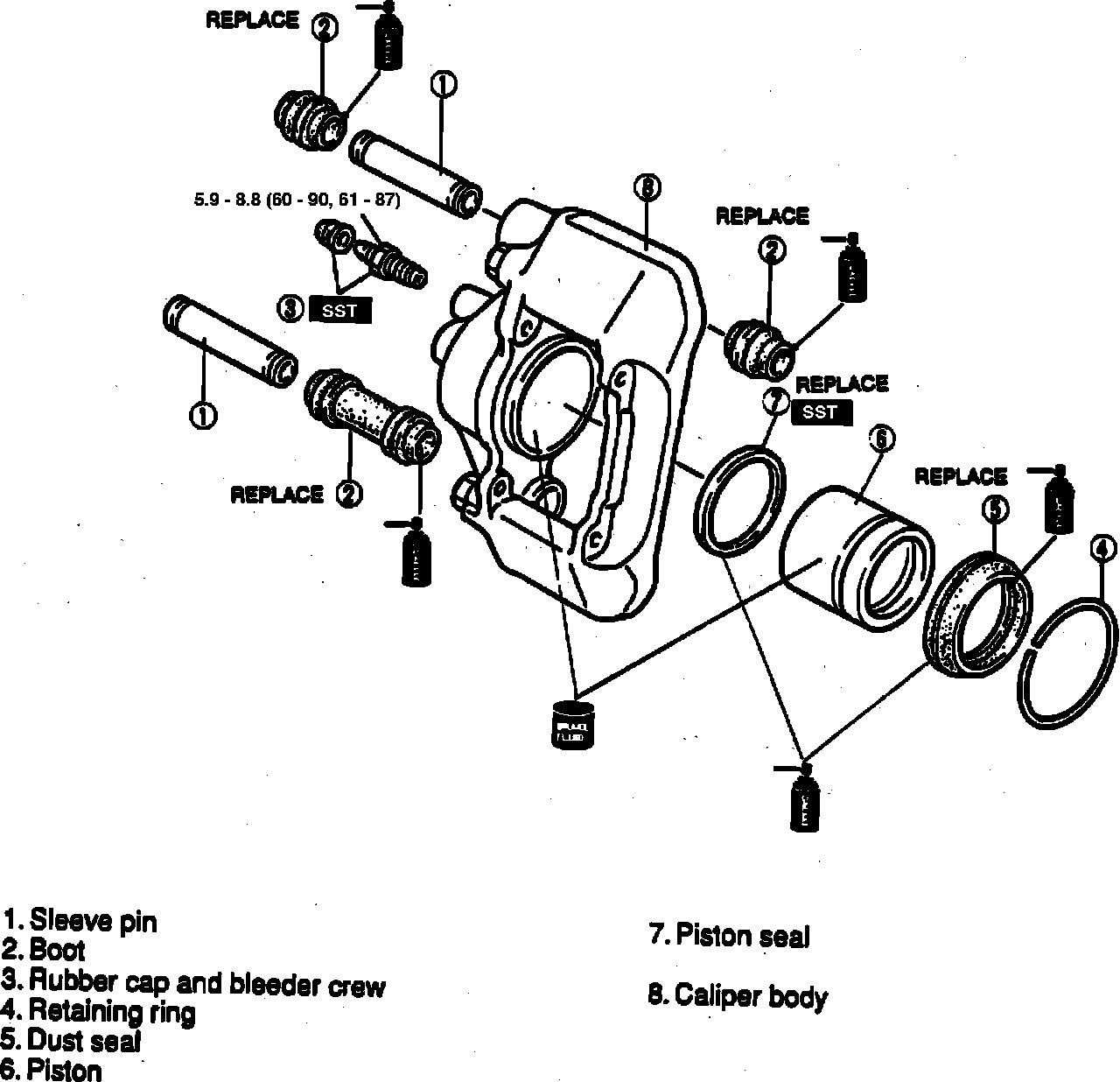 Fig. 6 Front Caliper Exploded View.: