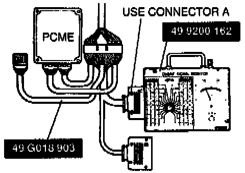 1. Connect the SST engine signal monitor between the PCME and the vehicle's PCME connector by using the SST adapter harness.