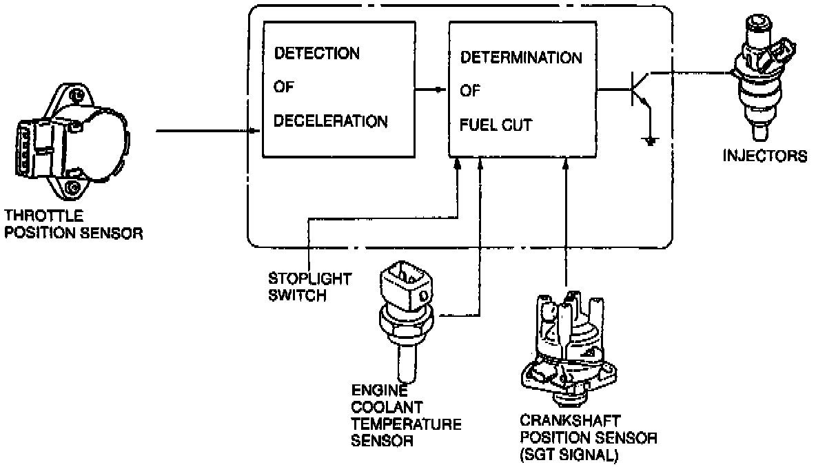 This system is used to improve the fuel economy, to prevent engine bucking during deceleration, and to protect the engine from over-revving.