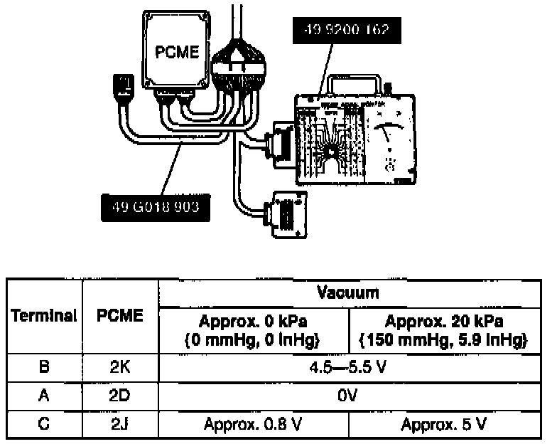 4. If not correct, check wiring harness from sensor to PCME.