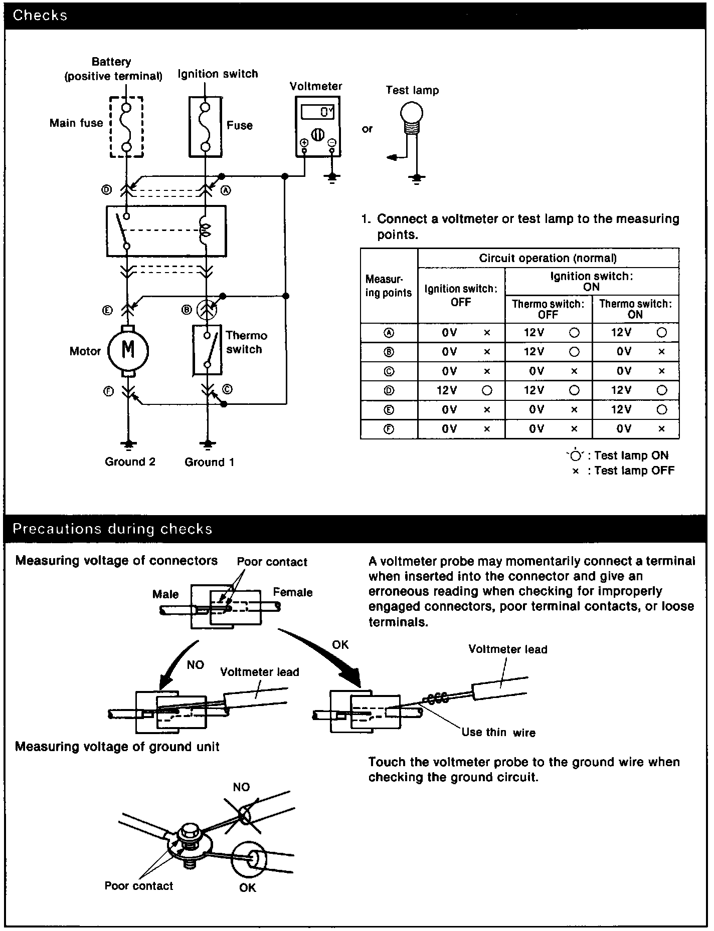 Measuring Voltage Checks & Precautions During Checks: