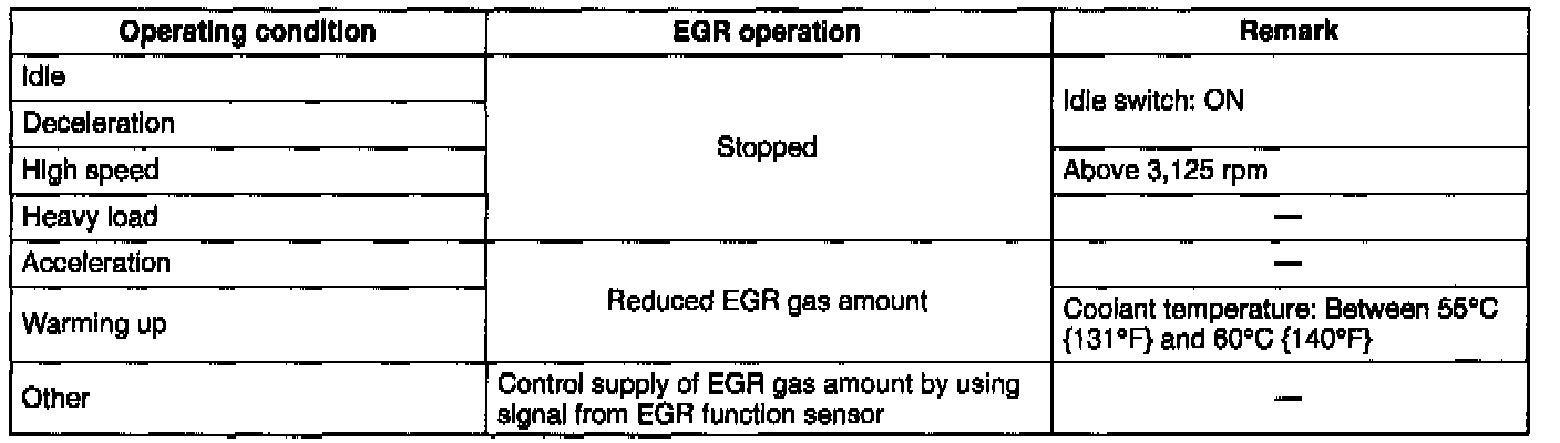 The EGR system recirculates a portion of exhaust gas through the EGR valve and intake manifold into the combustion chambers. EGR valve operation is powertrain control module engine (PCME) controlled via vacuum and vent solenoid valves. The EGR system does not operate when coolant temperature is below 55°C (131°F), to improve driveability when engine is cold.