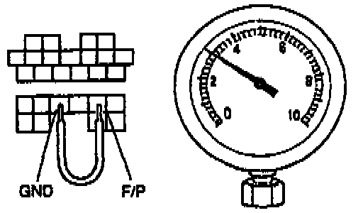 6. Turn ignition OFF. Wait 5 minutes and observe fuel pressure. It should be more than 150 kPa (21 psi)