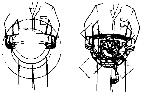 ^ A live air bag placed face down on a surface is dangerous. If the air bag deploys, the motion of the module can cause serious injury. Always face the trim cover up to reduce the motion of the module in case it accidently deploys.