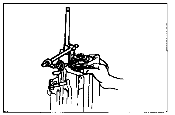 2. While holding the 1st/2nd control fork with one hand and the 3rd/4th shift fork with the other, raise them both at the same time and shift each of the clutch hub sleeves.