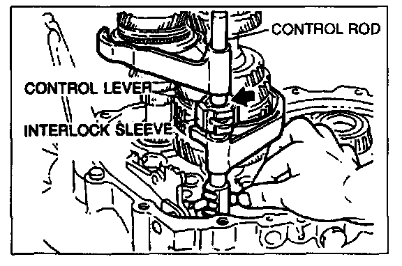 4. Separate the control rod and shift fork assembly from each of the clutch hub sleeves.