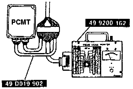 4. Turn the ignition switch ON, and check the powertrain control module transaxle terminal voltage, referring to PCMT Terminal Voltage Charts.