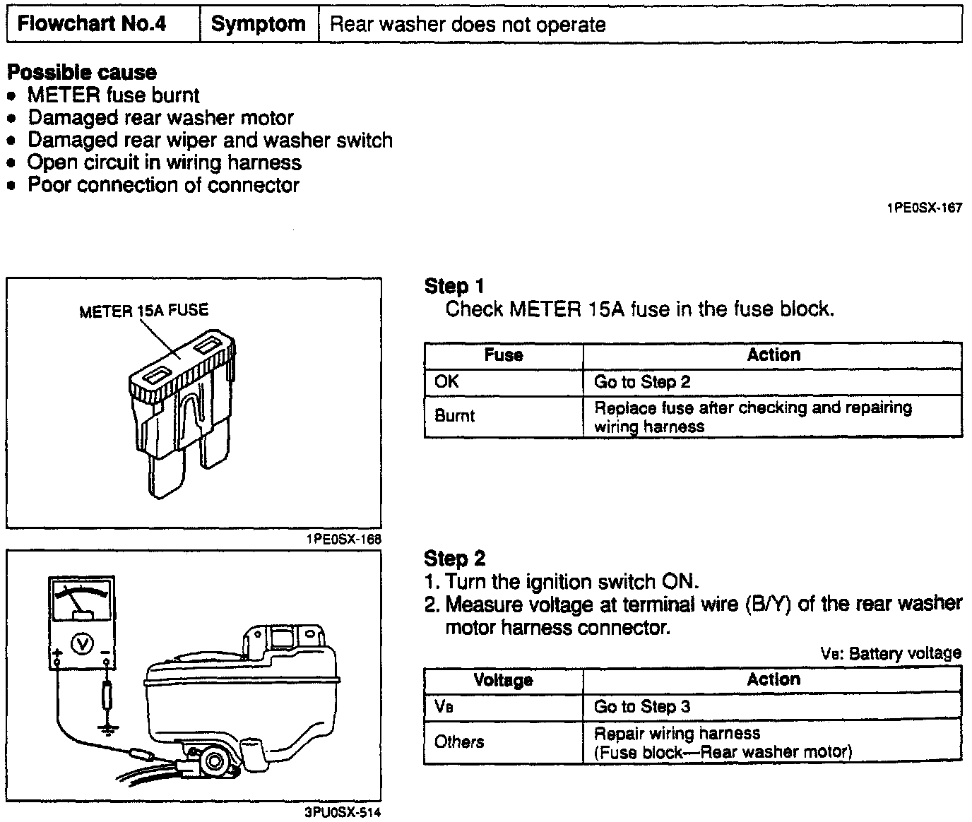 Flowchart 4 - Rear Washer Does Not Operate (Part 1):