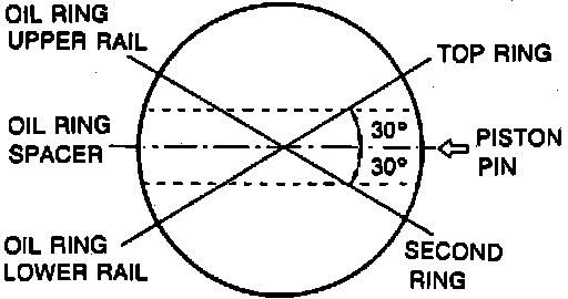 Fig. 44 Position Of Upper & Lower Oil Control Rings: