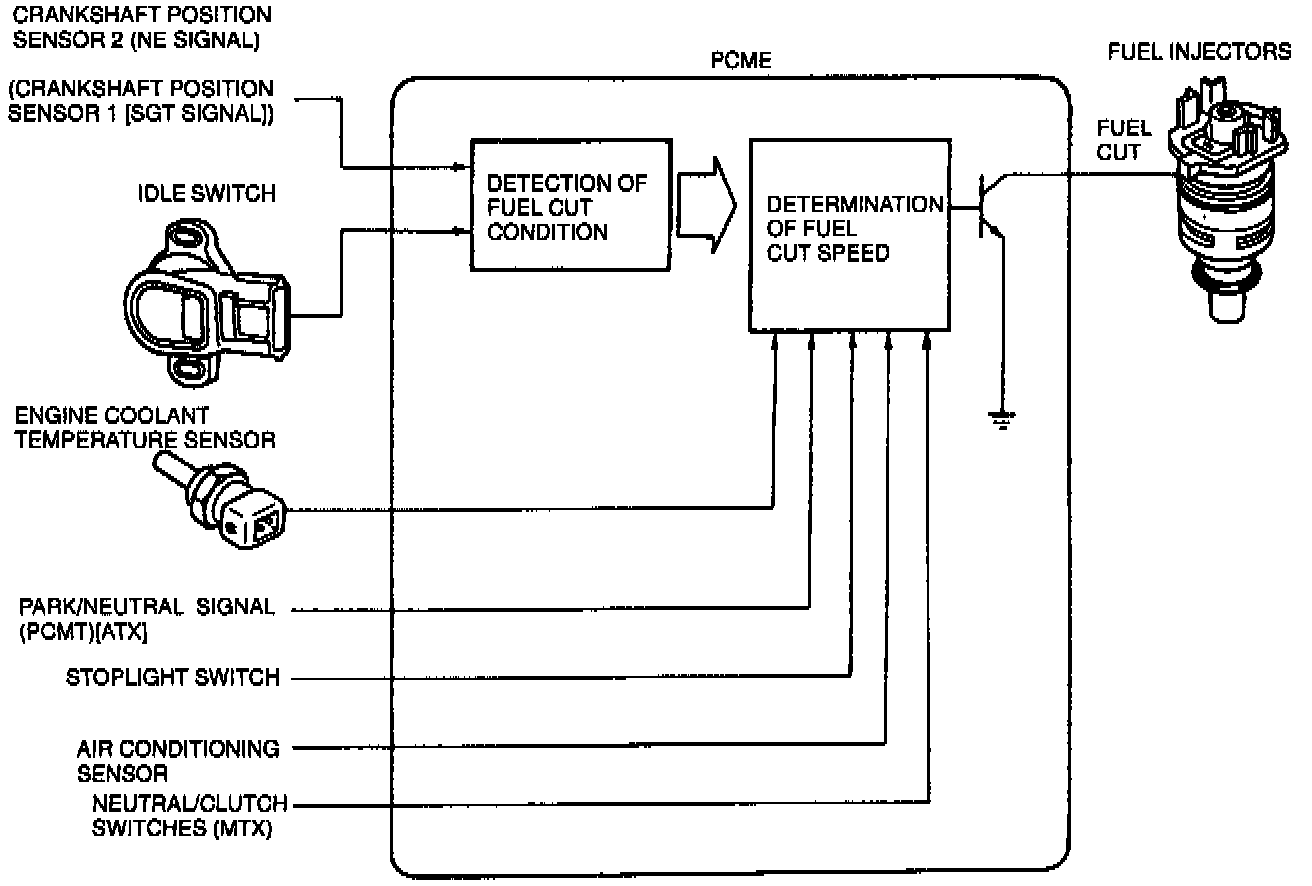 This system is used to improve the fuel economy, to prevent engine bucking during deceleration, and to protect the engine from over-revving.