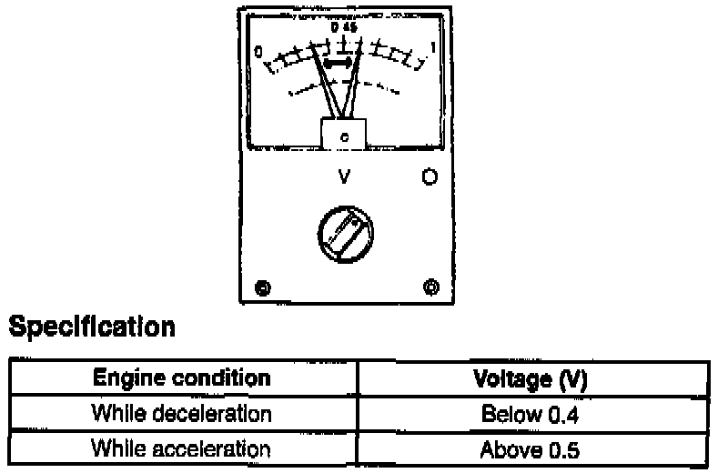 6. Voltage should be greater than 0.5 Volts when accelerating and less than 0.4 Volts when decelerating.