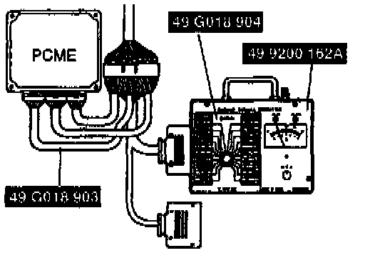 2. Connect the special service tools (SST)s (Engine Signal Monitor and Adapter) to the powertrain control module engine (PCME).