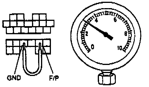 6. Turn ignition OFF. Wait 5 minutes and observe fuel pressure. It should be more than 150 kPa (21 psi)