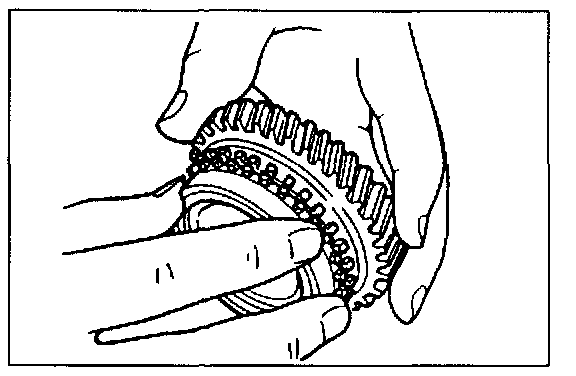 3. Inspect the synchronizer ring matching teeth for damage and wear.