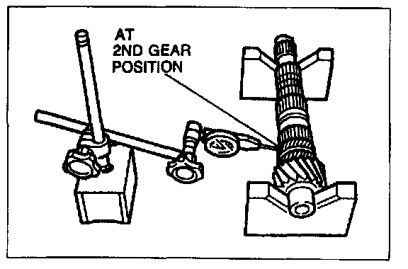 2. Measure the clearance between the reverse idler gear bushing and the reverse lever.