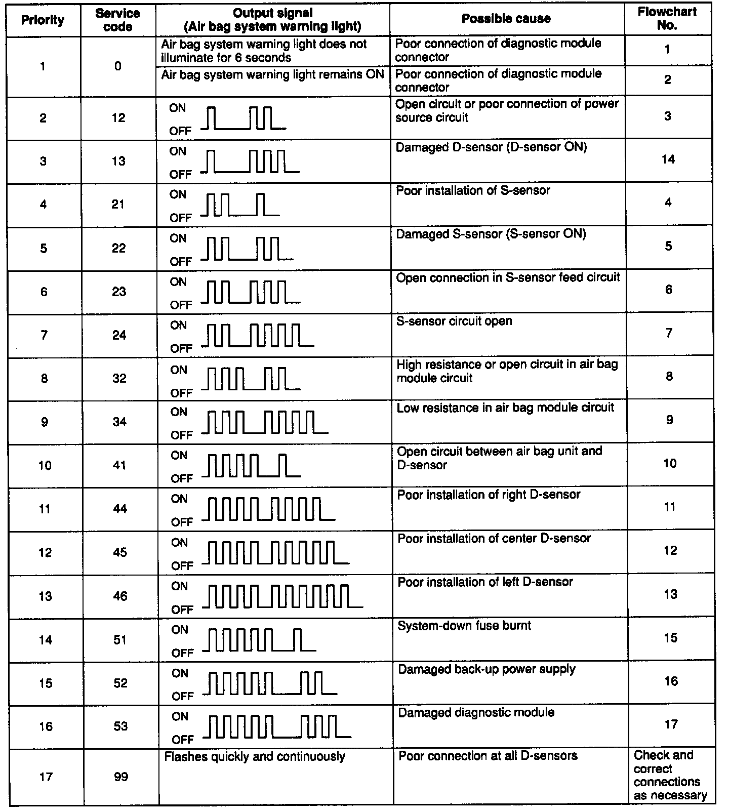 Service Code Table (Without Passenger-side Air Bag):