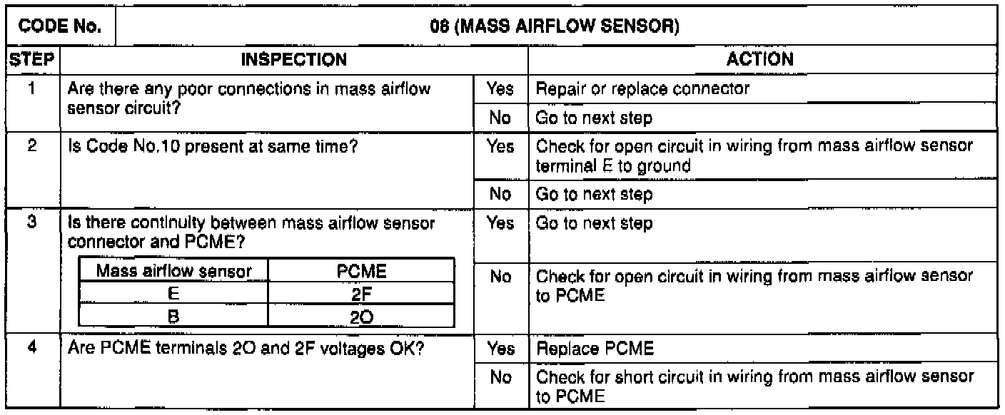 TROUBLE CODE CHART