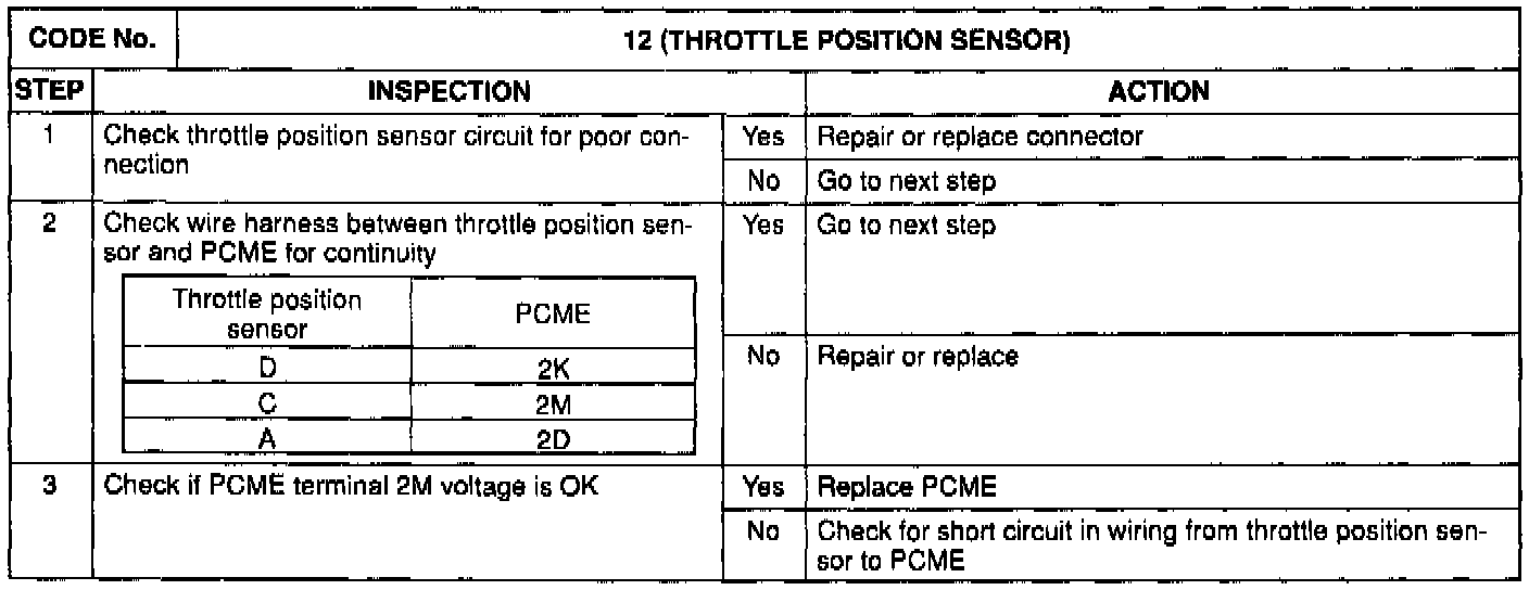 TROUBLE CODE CHART