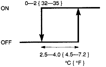 Note: The thermoswitch contacts will be open if the evaporator temperature is below 0-2°C { 32-35°F }.